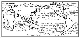 4、单选题 在夏威夷海岸与北美洲海岸之间出现了一个“太平洋垃圾大板块”,可称之为世界“第八大洲”。这个“垃圾洲”由数百万吨被海水冲积于此的漂浮塑料垃圾组成。下图为世界海洋漂浮塑料垃圾密度分布图(单位:万块/平方千米)。据此完成下列问题。