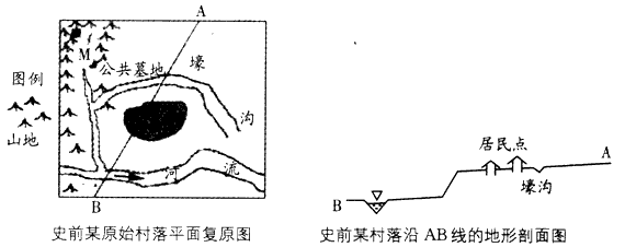 5、单选题 下图为我国某史前文明遗址的原始村落分布示意图。根据图中提供的相关信息,回答1~2题。