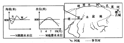 2、图中N为塔里木盆地的—内陆湖,M为湖边的—小绿洲,N湖的主要补给水源与M绿洲盐碱化最严重的季节分别是