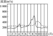 本题解析:水库的修建只能调节水库以下河道的径流。从图中径流变化曲线可知虚线为建坝后的流量曲线;而从建坝前河流径流的变化看,此河有两个汛期,一为春汛,一为夏汛,据此可知为东北地区的河流。