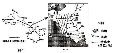 2、单选题 图6是“我国某省年降水量分布图”,图7是“该省某地区甲河水系示意图”,读图回答9-11题。