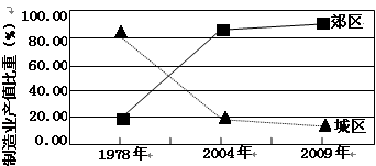 1978年到2009年,上海市郊区和城区制造业产值比重的变化以及近十年人口空间集聚的变化可以显示