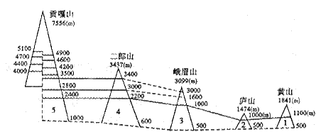 2、单选题 读图1“我国部分山地垂直带谱”图,完成问题: