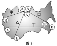 1、图1景观在图2中甲~丁所经地区呈现明显的是
