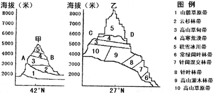 材料二、我国不同纬度的两座山的垂直自然带分布图