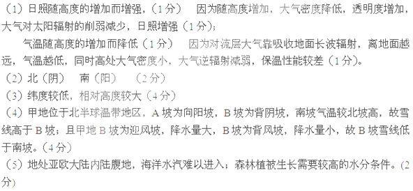 (5)甲山A坡没有云杉林,简析其主要原因。(2分)
