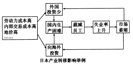 (3)产业的转移对转移国或地区而言往往会带来一些不利的影响。根据下图分析日本产业向国外转移对