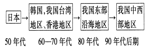 (2)影响工业转移的因素很多。下图表示________型产业在东亚地区的转移。吸引该工业转移的地区,