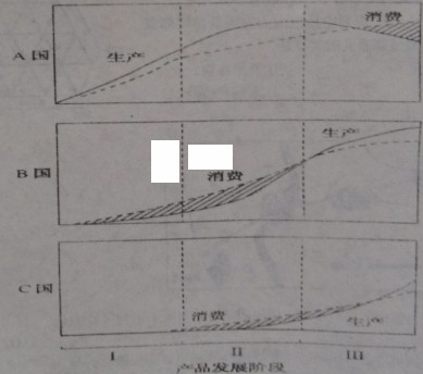 3、单选题 跨国公司是指在两个以上国家(包括公司母国)具有生产或实际性经营活动的公司。如下图为其新产品在母国及跨国生产、经营的时空变化模式图。读图回答下列各题。