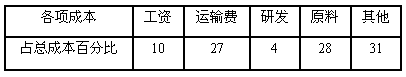 4、单选题 下表是某企业各项成本的比重,据此完成1—3题。