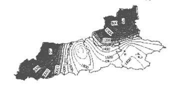 【小题1】图中河水自东向西流,说明总体地势东高西低,图中等值线向东数值增加;河谷处海拔较低,等值线凸向高值方向,即向东凸出,则b线表示河谷发育位置。