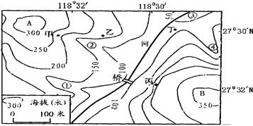 【小题1】图中若甲图为某山区等高线地形图(单位:米),且该地多岩崩和泥石流等地质灾害,图中最易发生泥石流灾害的地点是( )