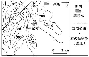 【小题2】沿图中a-b剖面线绘制的地形剖面图是下面的( )