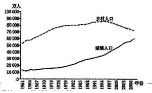 1、单选题 下图为“某国城镇人口和乡村人口的变化示意”。读图,回答问题。