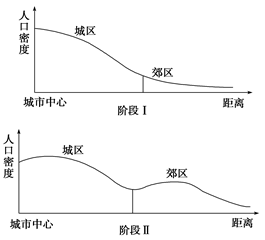 小题2:阶段Ⅱ中,城市中心人口密度下降的主要原因有( )