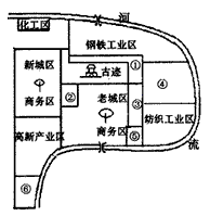 5、单选题 下图为某城市功能区规划图,图中城市布局合理。据此完成1—3题。
