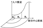 3、单选题 图为“某中等城市常住人口数量与距市中心距离关系图”。读图完成59~60题。