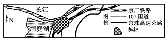 小题1:根据图示分析,该城市优越的区位条件主要是( )