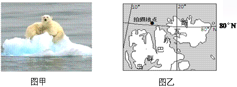 5、单选题 图甲为某科考队于当地时间2010年2月28日10时30分在斯瓦尔巴群岛考察时拍摄的照片,图乙为拍摄地点位置图。读图回答各题。