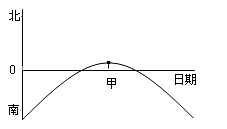 1、单选题 图表示某地正午日影长短变化及朝向。读图,完成下列各题。