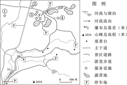 5、单选题 下图为温带某景区导游图。读图,回答问题。