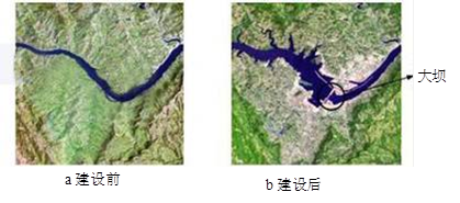 3、单选题  下图为我国南方地区“某河流水利工程建设前、后遥感影像图”。该工程建设大量应用地理信息技术,为精确定位、勘察设计、施工及决策提供准确的数据来源,为水利系统信息化管理提供可靠的依据。读图,回答下列问题。