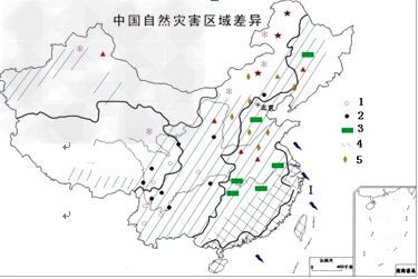 5、单选题 下图中的数字符号2、3、4、5表示的自然灾害的类型是