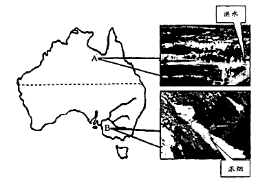 2011年1月的澳大利亚,当东南部备受高温干旱和山林大火之苦时,东北部又遭受洪水侵袭,澳洲处在一片“水深火热”之中。据此读图,完成下列问题。