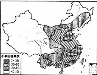 3、综合题 读“我国干旱灾害分布图”,回答下列问题(10分)