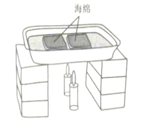 4、单选题 某同学利用铝盒、海绵、蜡烛、水等材料设计了一个模拟地球板块运动的实验。实验中发现蜡烛加热区的水流上升,两块海绵向左右两侧方向运动。读图回答题。