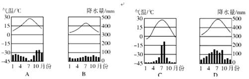 3、单选题 下列图中的气温和降水资料与伦敦气候相符的是( )