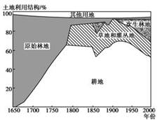 1、单选题 该图示意某区域土地利用结构的变化。读图分析,完成问题。