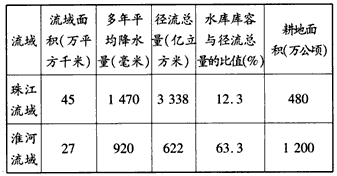 5、单选题 下表为珠江、淮河流域有关数据对比表。读表判断下列说法正确的是