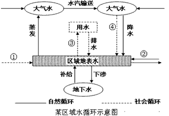 1、单选题 水循环包括自然循环和社会循环两类。下图中的①②③④分别表示