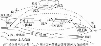 4、单选题 读“水的社会循环和自然循环示意图”,据此回答下列问题。