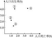 4、单选题 下图反映四个国家的人口出生率和死亡率,其中,人口再生产类型属于“现代型”国家的是
