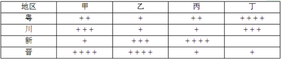 5、单选题 下表表示寒潮、酸雨、水土流失、土地荒漠化对四省(区)的危害程度(+号越多代表危害程度越高)。据此回答9~11题。