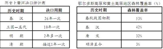 (1)历史上黄河的决口频率与森林覆盖率有何关系?