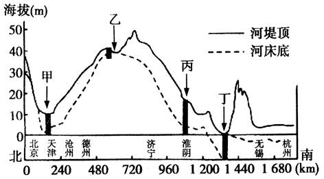 5、单选题 读京杭运河地形剖面图,完成下列问题。