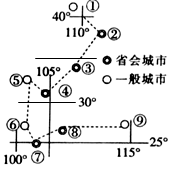 3、单选题 我国一综合考察队沿图中虚线从①地出发,到达图中的⑨地。读图,回答下列各题。