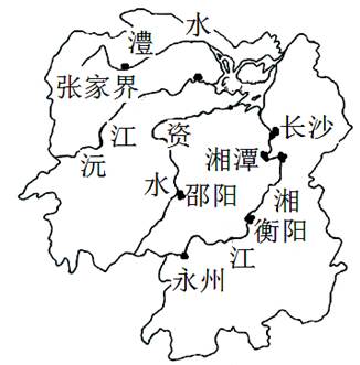 2、综合题 湖南省位于我国长江以南地区,下图为湖南省简图,读图并结合所学知识回答问题。(18分)