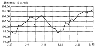 (3)根据材料二图示,分析3月11日至3月25日国际原油价格走势变化及原因。(4分)