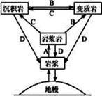 (1)在图中标出箭头,以正确表示岩石圈的物质循环过程。