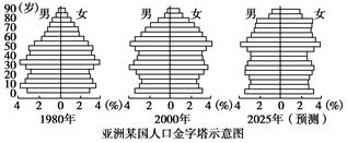1、单选题 下图反映了亚洲某国人口增长与构成的变化及其发展趋势。读图完成问题。