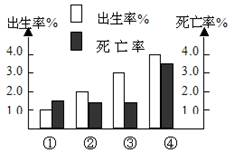 4、单选题 该图为四个国家的人口出生率和死亡率图,读图完成1~3题。