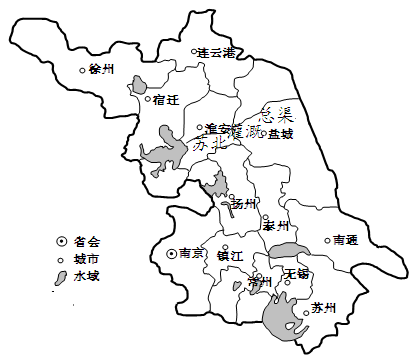 3、综合题 近年来,一些大型跨国企业在苏南地区建立研发中心、生产基地,促进了苏南地区产业升级与经济发展。苏北连云港、徐州、宿迁、淮安、盐城五市则提出“积极承接苏南产业转移,加大招商引资力度”的发展战略。图为“江苏省主要城市分布图”。 读图回答下列问题。(7分)