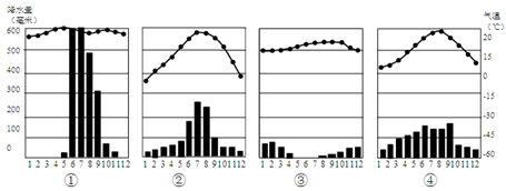 (2)下图中与苏州气候类型一致的是 (填数字序号),该气候形成的主要原因是 。(2分)
