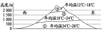 3、单选题 下图是加勒比海西岸的中美地峡某山地年均温、自然带垂直分布示意,据图完成小题。