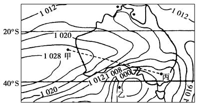 小题1:从纬度分布判断,图示反映是南半球,又因副热带高压影响30°-40°纬度范围,所以可判断太阳直射点南移,为南半球夏季,时间应为一月。故选B。