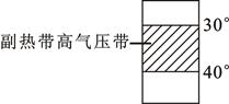 小题3:因该气压带为副热带高气压带,所以盛行下沉气流;其天气特点为高温干燥。故选D。